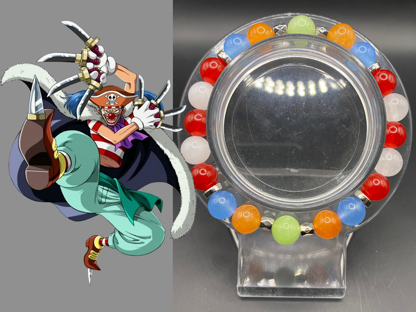 This piece is modeled after Buggy from One Piece!