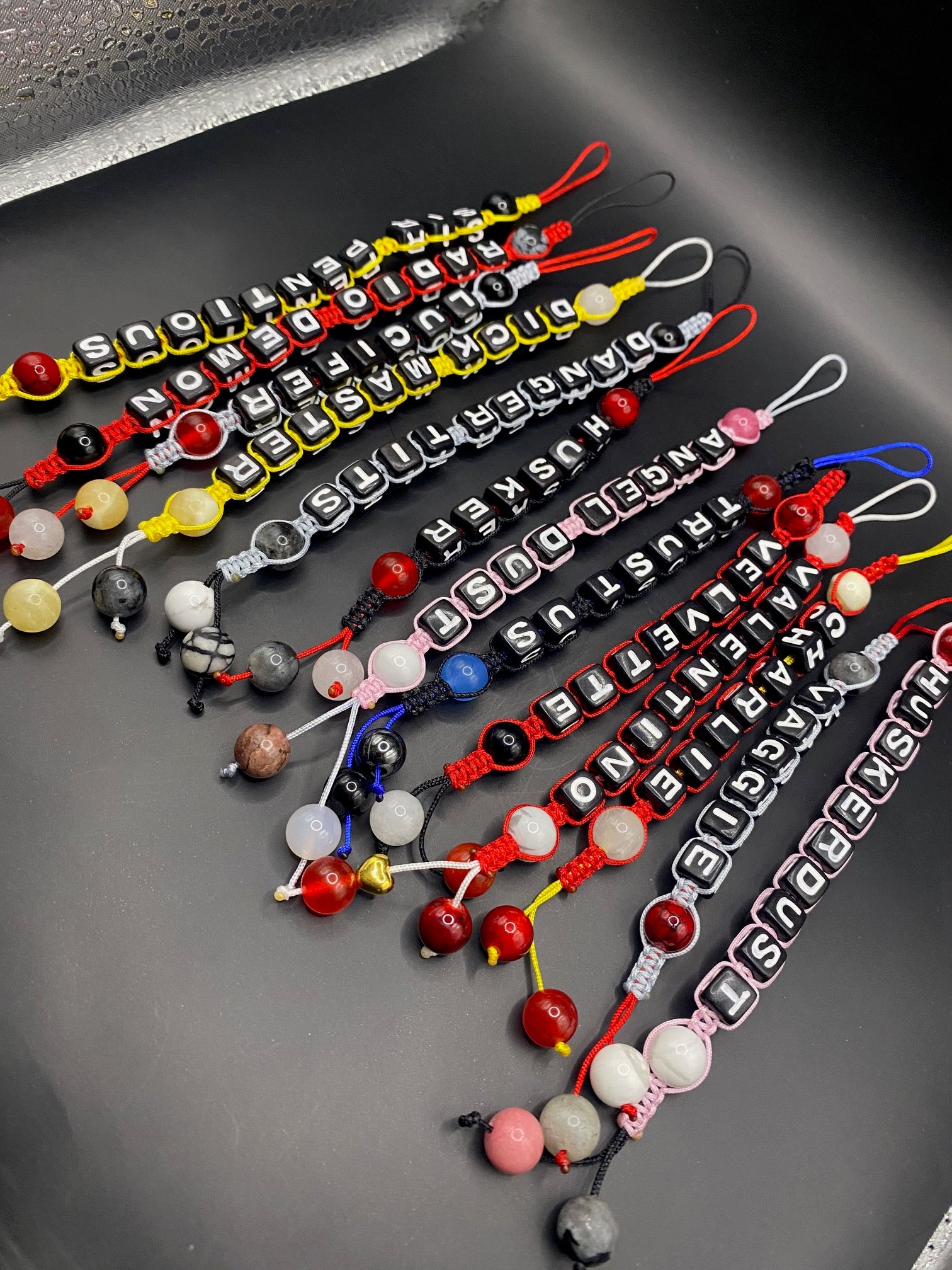 Hand braided keychains featuring 4 genuine crystal beads on each!