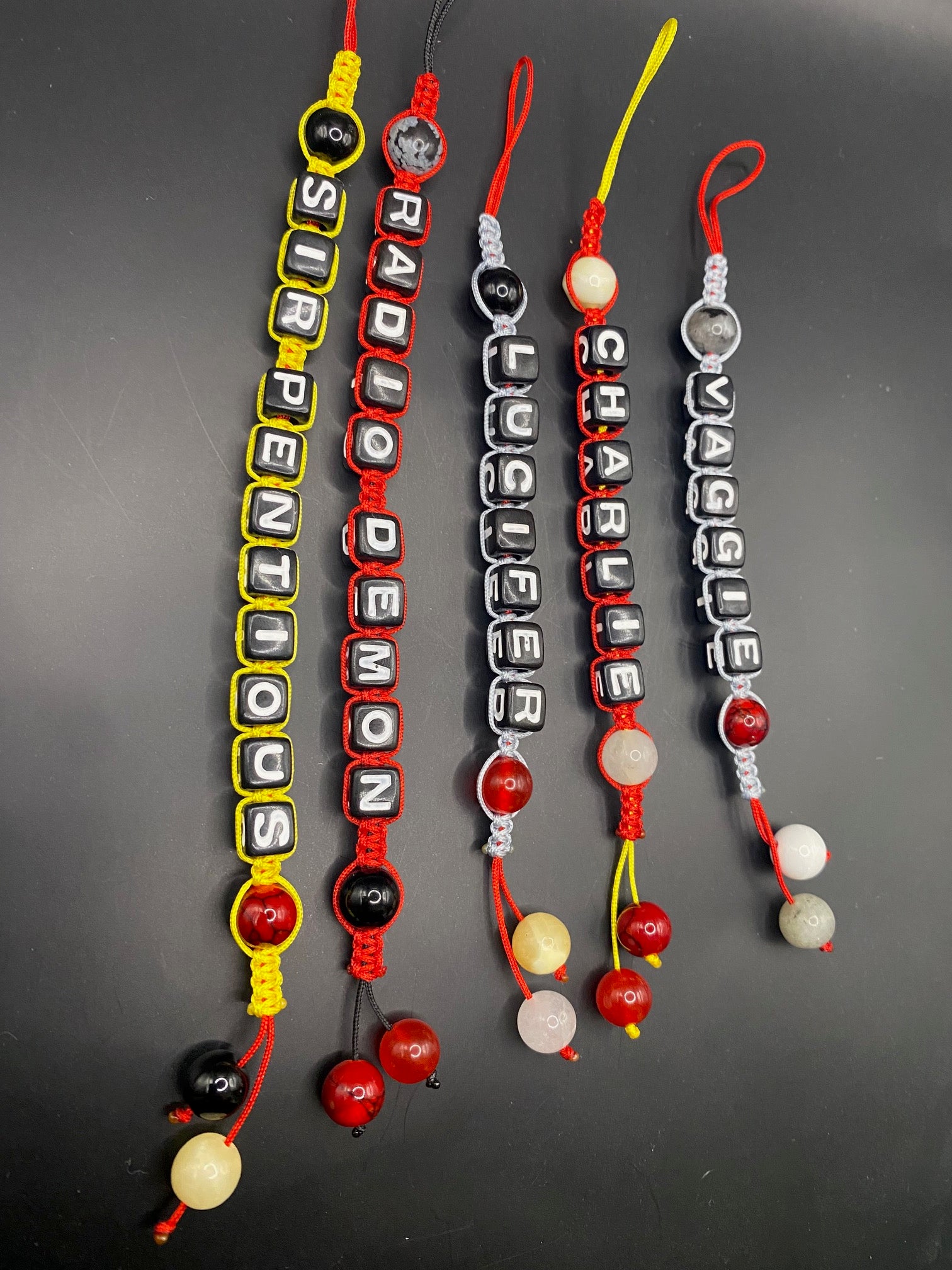 Radio Demon (Alastor) features snowflake obsidian, obsidian, dyed red quartz and red coral jade beads