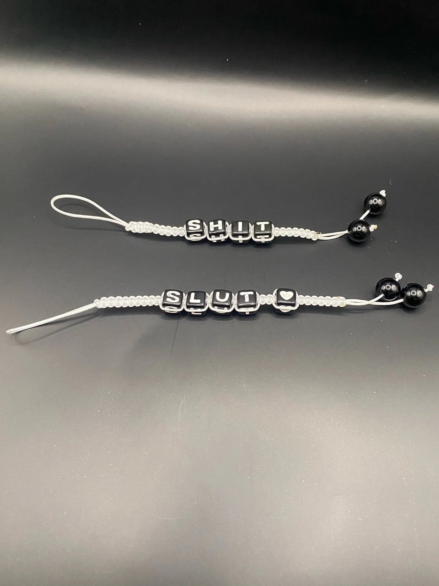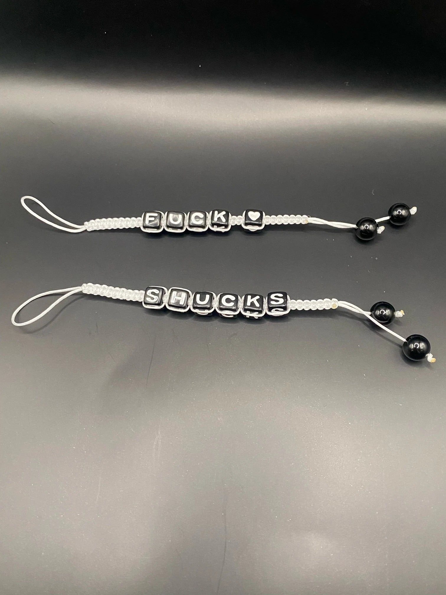 Each piece is made using 100% nylon cord, plastic letters and 2 genuine obsidian beads at the base.